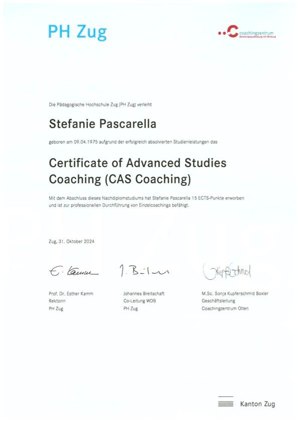 - Dipl. Coach CAS, im Verständnis eines traumasensiblen Coaching nach Savina Tilmann